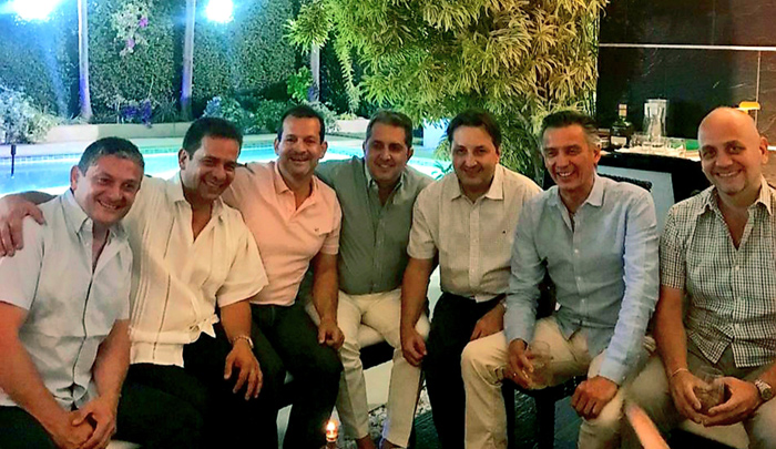 Ver Contenidos Relacionados al Autor Authored by petare Lunes, 2 de Septiembre de 2019 En casa de Hugo Ríos y Pilar Navas se reunieron varios amigos alrededor de una cena árabe. German García Herreros, Hugo Ríos, Rodrigo Fajardo, Koky Morelli, Juan Manuel Morelli, Juan Manuel Correal y Carlos Ríos.