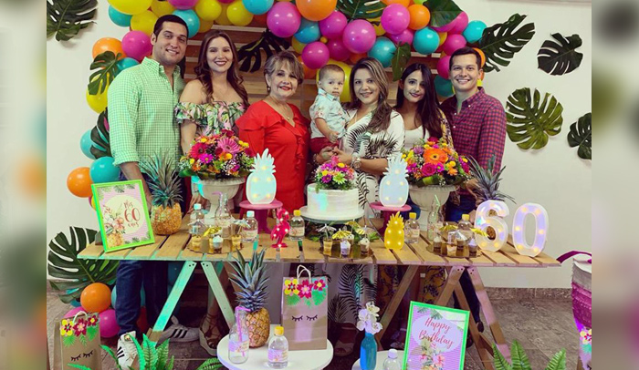 Nicolás Jaramillo, Karina Labrador, la cumpleañera Yamile Ramírez de Jaramillo, Lina Jaramillo, el niño Tomás Durán Jaramillo, Cristina García y Gabriel Jaramillo Ramírez.