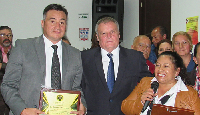 Los presidentes de las juntas de acción comunal de Pamplona, también entregaron una placa de agradecimiento al doctor Mora González.