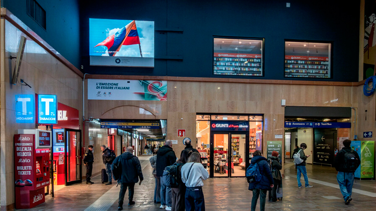 El despliegue audiovisual se concentró en estaciones como Milano Centrale, Roma Termini, Torino Porta Nuova, Venezia Santa Lucia, Bologna Centrale y Napoli Centrale, entre otras.