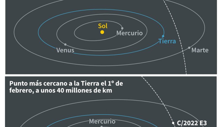 Este rastro brillante es lo que podrá observarse desde la Tierra, inicialmente en el hemisferio norte, a medida que "C/2022 E3 (ZTF)" se vaya acercando. El cometa brillará con todo su esplendor "cuando esté lo más cerca de la Tierra", explica Thomas Prince, profesor de Física del Instituto de Tecnología de California, que trabaja para ZTF.