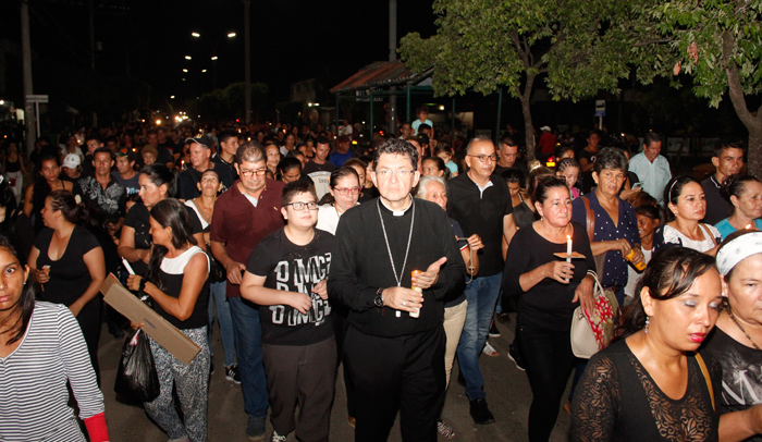 Una hora y media después de la celebración litúrgica, se inició la marcha con velas encendidas.