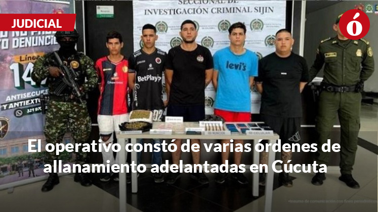 El operativo constó de varias órdenes de allanamiento adelantadas en Cúcuta, en las que encontraron 466 gramos de marihuana, 34 gramos de cocaína, 2,4 gramos de heroína, un revólver y 32 cartuchos.