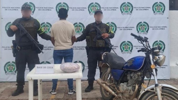 Tras corroborar que se trataría de base de coca, los uniformados lo pesaron, hallando que tenía más de dos kilos de dicha sustancia. Inmediatamente fue capturado y puesto a disposición de las autoridades por porte, fabricación o tráfico de estupefacientes.