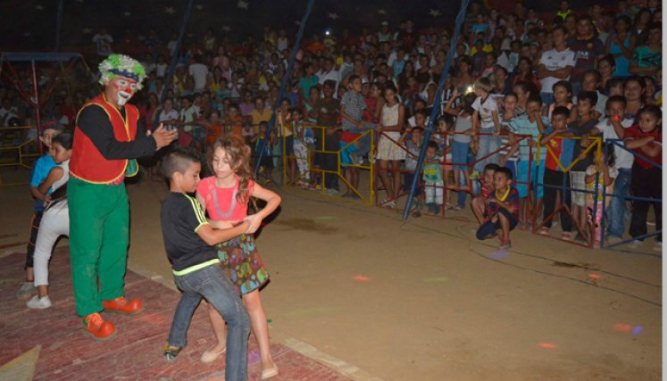 “No han parado de reír con los payasos, nos piden que repitan su actuación y eso lo aprovechamos para interactuar con ellos en la carpa de unos 30 metros de diámetro, dice Dulcey.