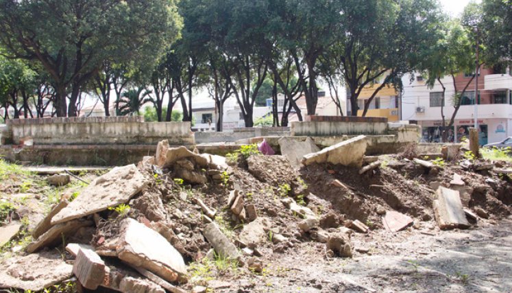 La intención del negociante era construir ocho locales comerciales dentro del parque, pero tras la alerta emitida por los vecinos la secretaría de Planeación intervino suspendiendo los trabajos, los cuales alcanzaron a destruir la fuente central y parte del mobiliario del parque.