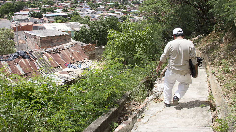 Como no tienen una vía amplia para entrar o salir deben desplazarse por las gradas disipadoras que unen las calles de la parte alta, pese a que estas construcciones fueron hechas con el fin de mitigar el impacto de las aguas lluvias sobre la montaña.
