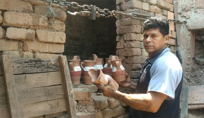 Este alfarero natural de Arboledas confiesa que lleva más de 30 años elaborando objetos de barro, oficio que aprendió después de ser un vendedor informal en las calles de la capital de Norte de Santander, creando desde un inicio entre otras cosas utensilios domésticos como platos, ollas, pocillos y chorotes o chocolateras.