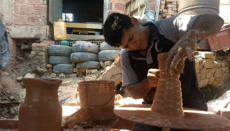 (Aunque la situación está pesada y es poca la obra que se vende, Cheo está dispuesto a seguir en el oficio, moldeando la arcilla para darle vida a objetos útiles para sus semejantes.)