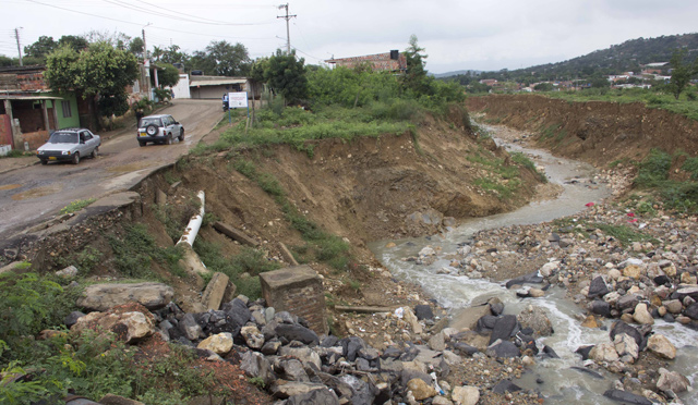 Los vecinos estaban en riesgo, porque el caño, que nace en Palmeras, cruza Belisario Betancur y atraviesa parte del Anillo Vial, carece de canalización y, tras la desviación, el problema empeoró.