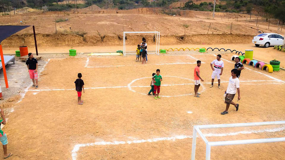 En una maratónica jornada, jóvenes y adultos se armaron de palas y picas, para alistar el terreno, enterrar llantas, y demarcar los límites del nuevo escenario deportivo y recreativo del asentamiento.