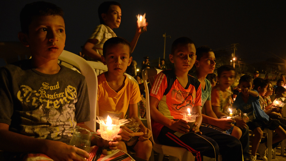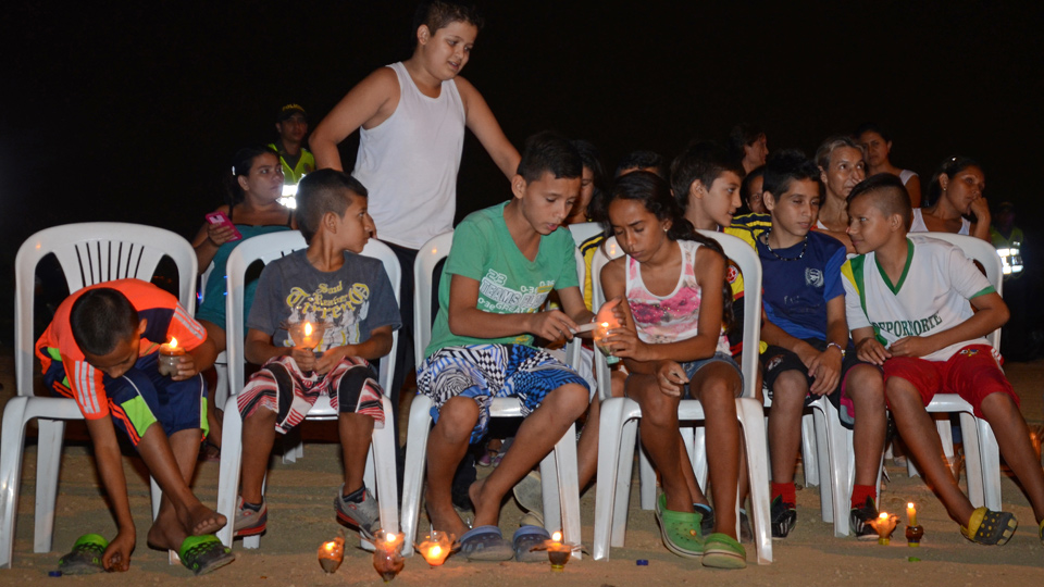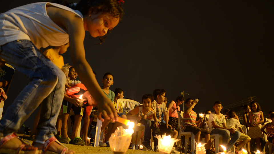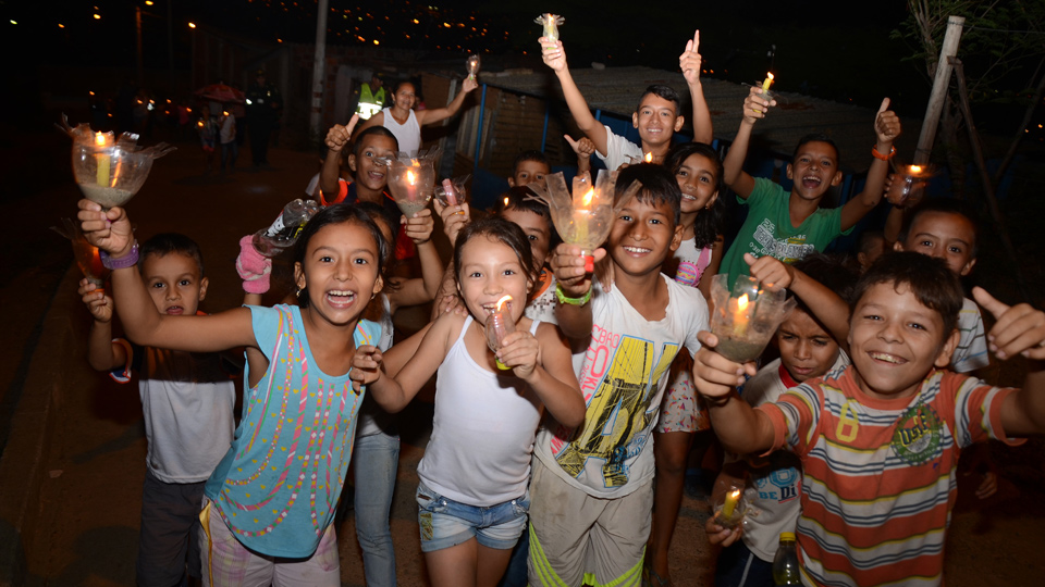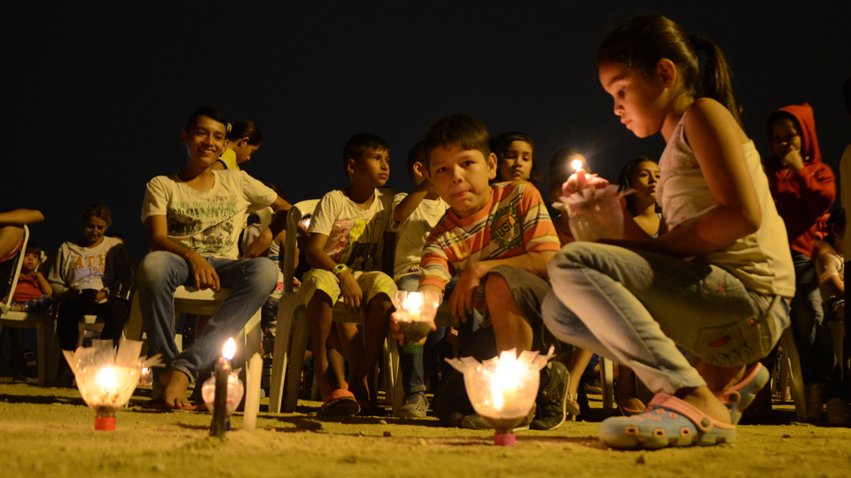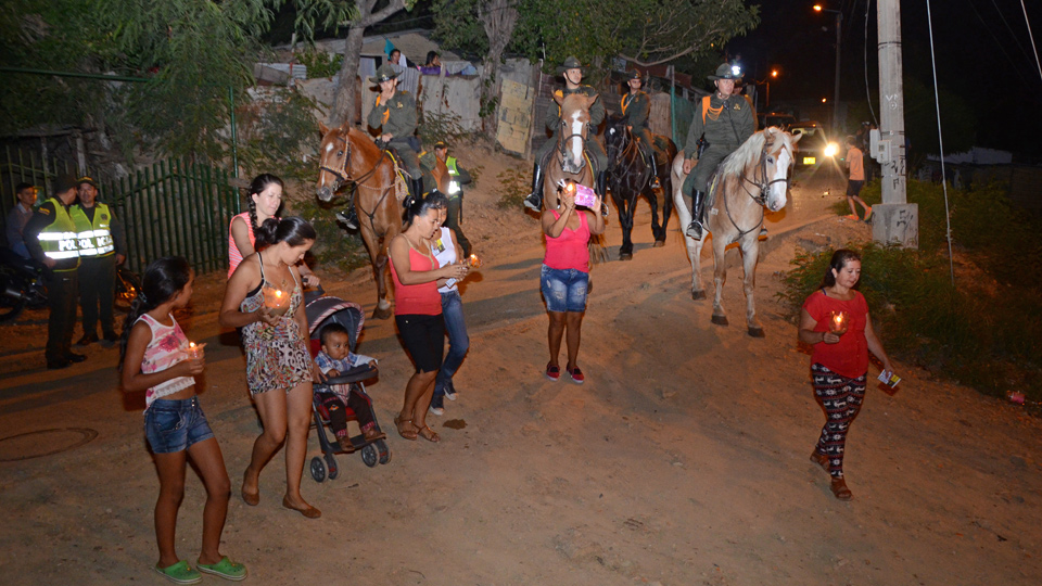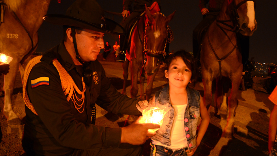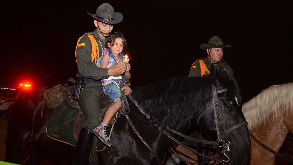 Los niños disfrutaron de la luz de las velas, las linternas y los faroles, además del acompañamiento de algunos caballos de la Policía.