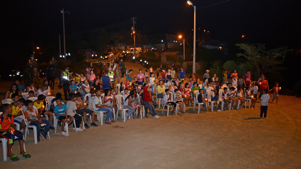 El evento empezó a las 6 de la tarde en la cancha de microfútbol La Amistad, donde los uniformados se encargaron de entregar recomendaciones para el ahorro de energía.