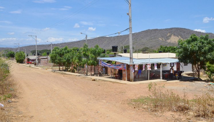 Afiches y pendones de campañas políticas pegados en la entrada del proyecto de vivienda gratuita Desplazados 1 y 2, en la vereda Los Mangos, son el vestigio de la última visita que ha tenido la comunidad.