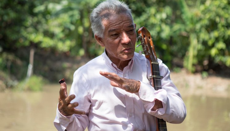 Quienes conocen su talento para levantar el ánimo con solo recitar un poema o tocar su guitarra lo buscan con frecuencia en su casa en Juan Frío, donde entre cacaoteros y estanques de cachamas, en medio del campo que se niega a abandonar, se sienta a componer.