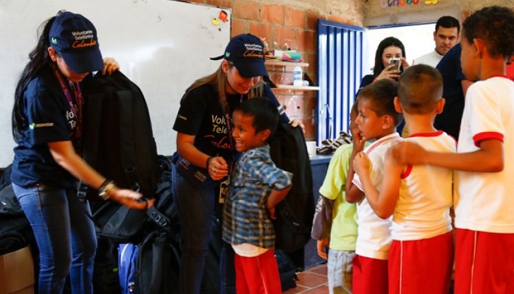 Camila no solo hace parte de los beneficiarios de los bolsos y útiles escolares que entregaron el fin de semana los voluntarios de la Fundación Telefónica, también es la más grande del segundo grado y la representante.