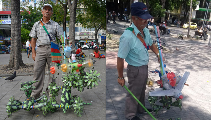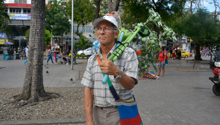 El adulto mayor se rebusca desde hace año y medio con estos objetos ecológicos, debido a que lo que gana con el trabajo que desarrolla en su casa no le alcanza para cubrir todas sus necesidades. Este cucuteño es técnico en electrodomésticos, por lo que en su comunidad lo conocen también por reparar licuadoras y ventiladores.