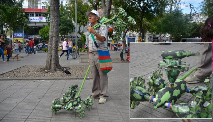 A él se ve casi todos los días caminando el parque Santander, lo recorre de un lado a otro con unos vehículos de juguete que pone a andar y que llaman la atención a la primera vista. En esta época, cuando las compras se centran en gran parte en los regalos para los niños, este emprendedor ambiental le apuesta a sus creaciones.
