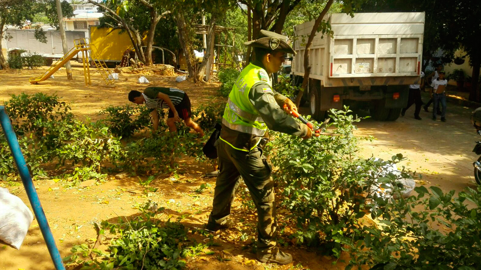 Con escobas, rastrillos, palas, barras, bolsas y brochas en mano, el Grupo de Protección Ambiental y Ecológica (Gupae) de la Policía y la comunidad del barrio Santa Clara en Cúcuta, lograron recuperar un parque de la comuna cuatro.