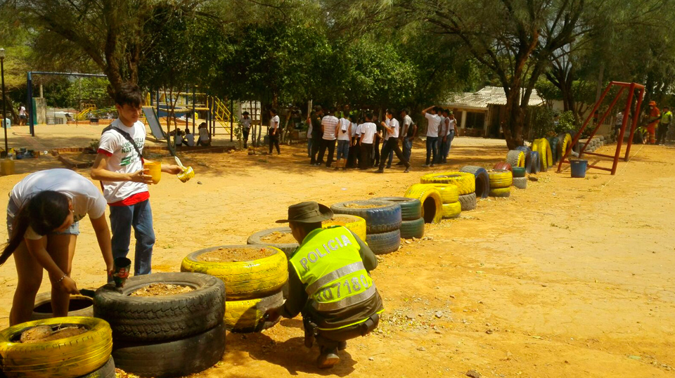 Algunos elementos dañados fueron restaurados, como los arcos de la cancha de fútbol. Igual sucedió con varias llantas usadas de vehículos, las cuales fueron organizadas, pintadas y habilitadas para el juego de los niños.