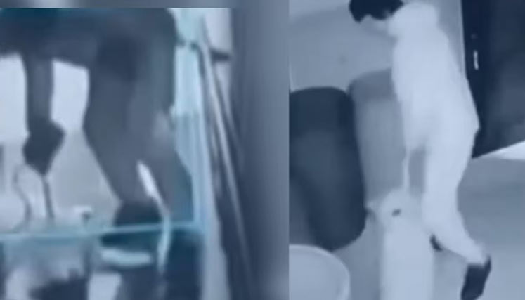 Segundos después, las cámaras lo captan en un cuarto; allí golpea al perro contra una caneca y continúa pateándolo en el abdomen y la cara. Finalmente, el hombre toma, al parecer, un trapero y sale del cuarto. En ese momento termina la grabación. Vale precisar que el canino, pese a los brutales golpes que recibió, en ningún momento se mostró agresivo.