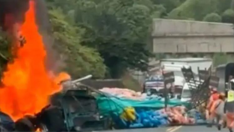 Tras el fuerte impacto, el vehículo de carga explotó y se generó un incendio de gran magnitud que envolvió a ambos automotores, produciendo una densa columna de humo visible desde varios puntos de la carretera.