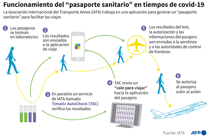 Para la IATA, es necesaria una plataforma digital para los pasajeros con información sobre qué pruebas, vacunas y otras medidas requieren antes de viajar, detalles sobre dónde pueden hacerse las pruebas y brindarles la posibilidad de compartir sus pruebas y resultados de vacunación de una manera verificable, segura.