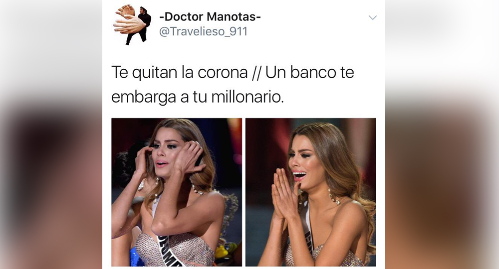Debido a toda esta situación, en las redes sociales no han parado las imágenes divertidas y burlonas, pues comparan este impase del italiano con el penoso suceso que sufrió Ariadna Gutiérrez durante el Miss Universo, en donde fue coronada como la soberana del mundo, y minutos después, perdió su corona cuando el presentador aseguró que había equivocado, y que la corona era para su colega la representante de Filipinas.