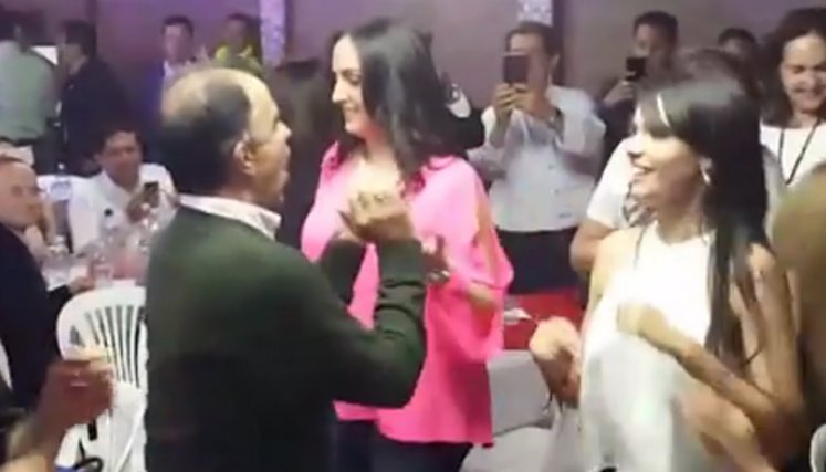 En él se ve a Zuluaga bailando vallenato en medio de un grupo de personas e invitando a la representante a unirse al ritmo del acordeón.