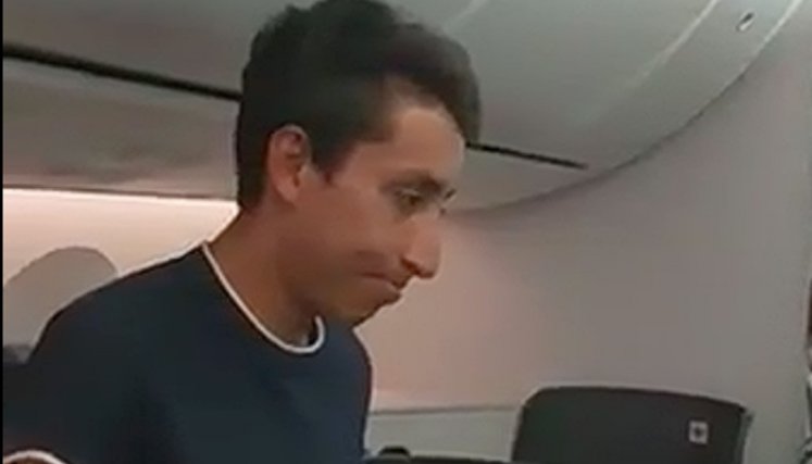 Durante su viaje a Colombia, en un vuelo de Avianca, el ciclista fue sorprendido por la tripulación y los demás pasajeros, quienes ofrecieron un brindis en su honor.