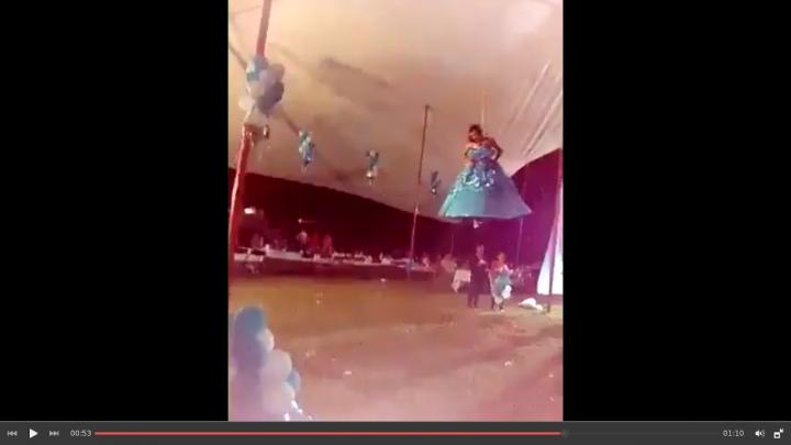 Una quinceañera quiso celebrar su cumpleaños con un gran espectáculo en el que ella colgaba del techo y entre giros iba llegando al piso, pero el resultado no fue el esperado.