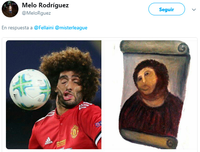 El partido de la Supercopa de Europa, realizado este martes, entre Real Madrid y el Manchester United, terminó no solo con la victoria del conjunto español, sino además con una lluvia de memes del jugador belga Marouane Fellaini, quien se hizo viral en las redes sociales tras un pelotazo que recibió durante el partido.
