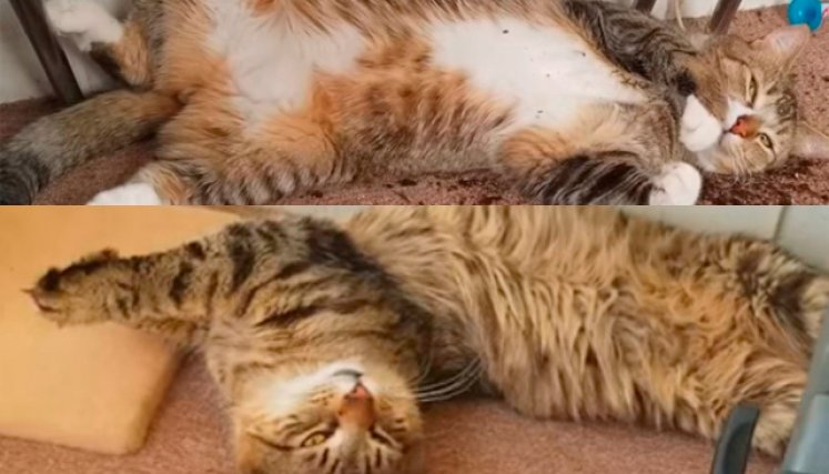 Uno de los gatos aparece en las imágenes debajo de una silla, con las patas hacia arriba, y el otro está recostado de forma muy relajada. Mientras la estadounidense graba los daños que hicieron los mininos se queja del desorden de estos dos traviesos animales.