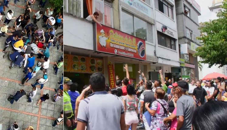 Faltaban pocos minutos para las 11 am del jueves, cuando las personas se aglomeraron frente a un edificio en la calle 10, entre las carreras tercera y cuarta del centro, para tratar de recoger el dinero que lanzaba desde una ventana una mujer.