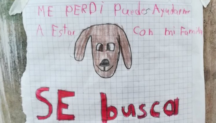 El pequeño, al llegar a su vivienda y enterarse de lo sucedido, tomó lápiz, colores y papel y se dedicó a hacer un anuncio en donde buscaba a su perrita y exponía característicos rasgos para que en caso de que alguien la viera pudiera reconocerla.