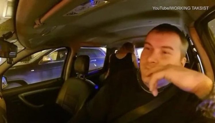 El taxista avergonzado, quien también es un videoblogger conocido por sus seguidores de YouTube como ‘Hardworking Cab Driver’, parece tratar de ignorar sus movimientos e intenta mantener la vista al frente.