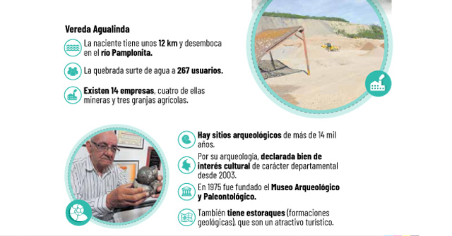 Agualinda, a 15 minutos del centro del municipio, es una de las 10 veredas de Los Patios en donde existen 14 empresas, cuatro de ellas mineras que explotan la base y sub base de recebo, la arcilla y la piedra caliza; esta última actividad tiene muy preocupados a los habitantes.