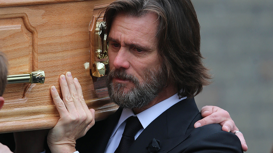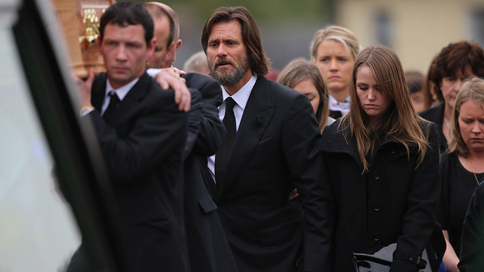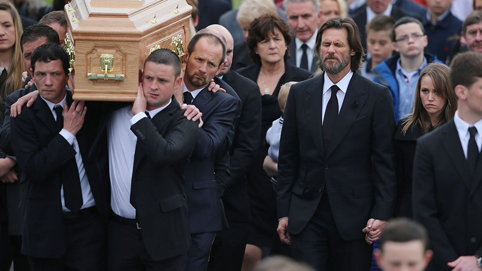 Afligido y con una notable tristeza se vio al famoso comediante estadounidense Jim Carrey durante el entierro de su exnovia Cathriona White.