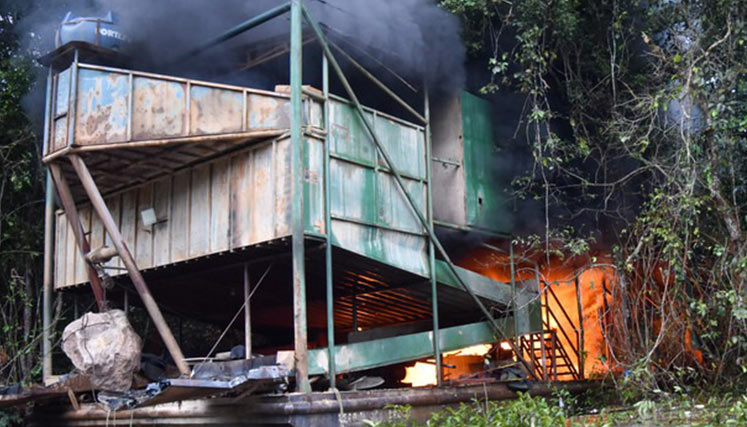 En las últimas horas, más de 90 uniformados de la Dirección de Carabineros de la Policía, con la intervención aérea de tres helicópteros back Hawks, cuatro aeronaves de Fuerza Aeroespacial Colombiana con sus tripulaciones, destruyeron 14 dragones (maquinaria fluvial de extracción) y tres remolcadores, 33 motores y una excavadora. Al igual que la incautación de 4.800 galones