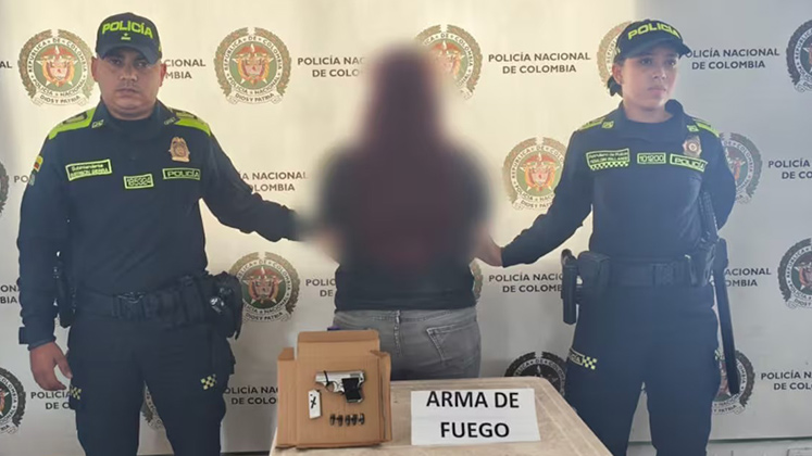 Durante la requisa, los policías hallaron en su bolso una pistola descrita inicialmente como calibre 25 milímetros, con un cargador y cinco cartuchos. La mujer no presentó permiso para el porte o tenencia del arma, lo que motivó su captura en flagrancia por el presunto delito de fabricación, tráfico, porte o tenencia de armas de fuego, accesorios, partes o municiones.