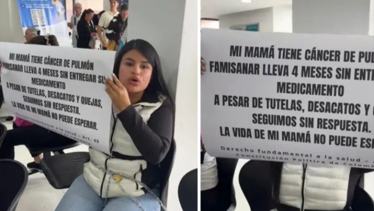 La lucha de Martha Ofelia Rodríguez, una paciente de 57 años con cáncer de pulmón, no es solo contra la enfermedad, sino también contra un sistema de salud que padece una crisis de medicamentos en todo el país. Luego de meses de interrupción en su tratamiento, su hija, Natali Páez, se vio obligada a encadenarse en una sede de la EPS Famisanar para exigir la entrega del medicamento.