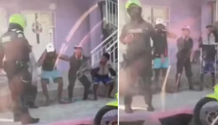 Un grupo de jóvenes fue retenido por un uniformado de la Policía Nacional luego de que, presuntamente, lanzaran piedras contra una vivienda. La respuesta del agente ante el presunto acto de vandalismo fue la orden de realizar ejercicio físico en el sitio de los hechos.
