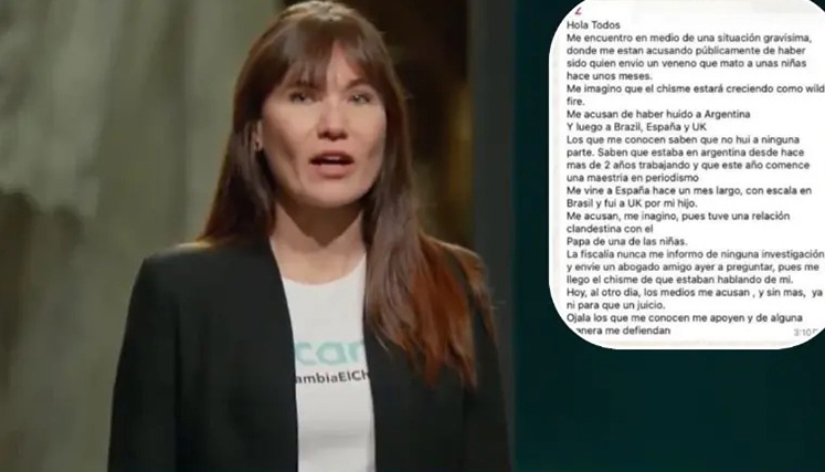 En este punto entra en escena Guzmán, porque después de los hechos salió del país con destino a Argentina y luego a Europa. Sin embargo, se conoció un supuesto mensaje de WhatsApp enviado desde un número argentino que ella habría compartido con un grupo de personas para aclarar la situación.