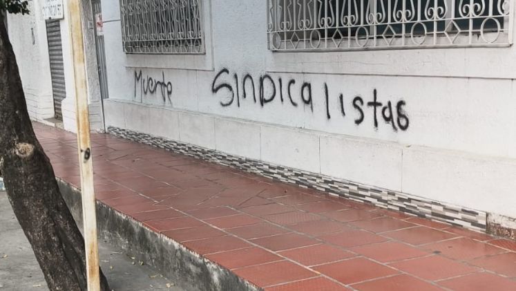 De acuerdo con la denuncia, la fachada del inmueble fue marcada con la frase “Muerte sindicalistas”, un mensaje que la organización calificó como supremamente agresivo, lesivo y peligroso, al representar una amenaza directa contra la integridad y la vida de los dirigentes y afiliados sindicales.