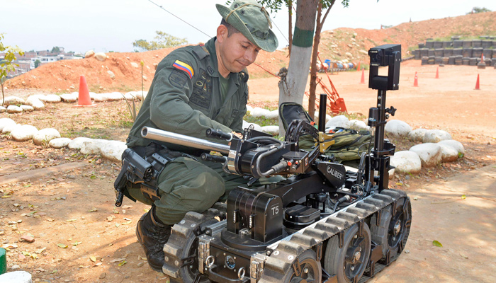 Un tiro con el cañón de este robot (que utiliza un sistema de agua) permite abrir las cajas o los elementos donde se presume que hay un explosivo.