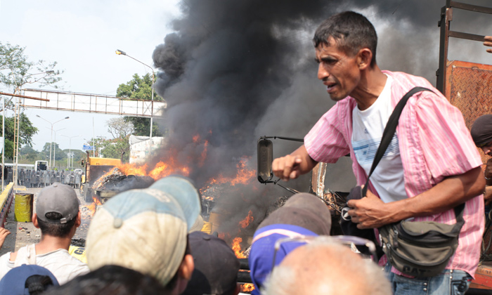 En el puente internacional Francisco de Paula Santander, entre tanto, dos tractomulas cargadas de medicinas, alimentos y paquetes de aseo fueron quemadas por la Policía Nacional Bolivariana.