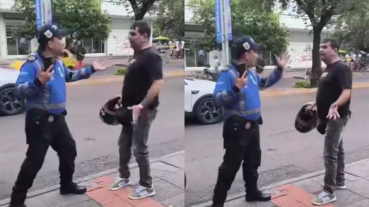 En medio del altercado, el ciudadano habría amenazado al agente con golpearlo utilizando su casco, lo que generó tensión entre las personas que transitaban por la zona.