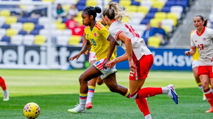 El seleccionado colombiano enfrentó a Canadá, potencia en el balompié jugado por mujeres, pierde, de manera parcial, 3-1 con el elenco norteamericano.