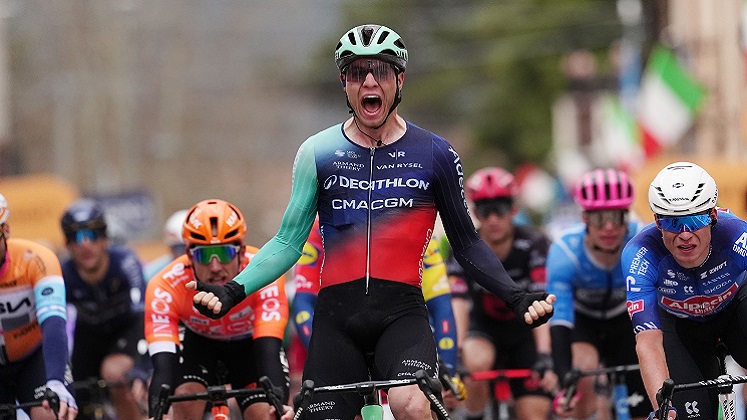 Ni siquiera Arnaud de Lie (Lotto Intermarché), con vía libre por la derecha del esprín, ni su compatriota belga Jasper Philipsen (Alpecin), pudieron llegar a un Andresen que tuvo agallas para mirar a ambos lados y celebrar el triunfo antes de cruzar la meta tras un ataque sin respuesta.