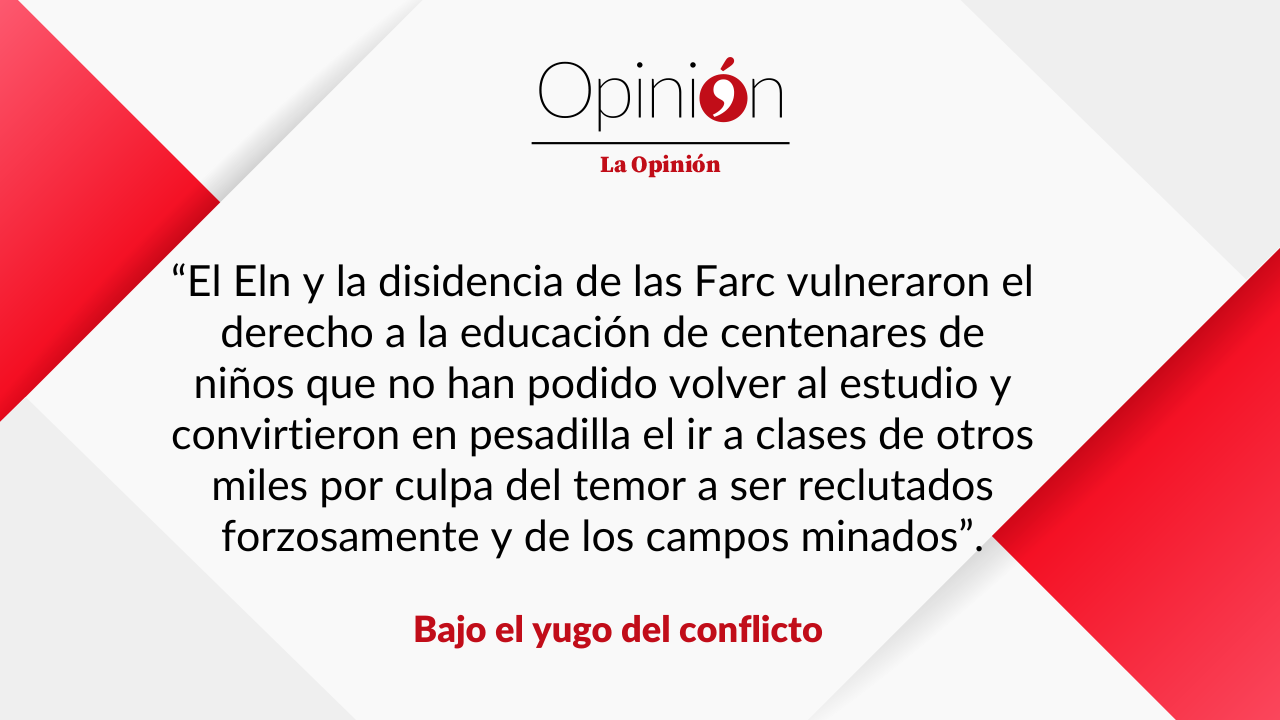 El Ejército de Liberación Nacional (Eln) y la disidencia de las Farc vulneraron el derecho a la educación de centenares de niños que no han podido volver al estudio y convirtieron en pesadilla el ir a clases de otros miles por culpa del temor a ser reclutados forzosamente y de los campos minados.